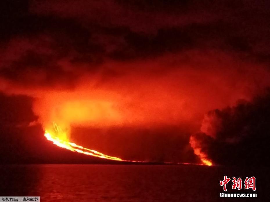 加拉帕戈斯群岛火山爆发 岩浆流淌成河