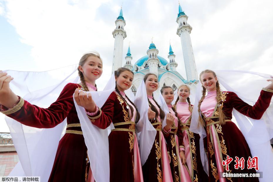 当地时间6月15日,在俄罗斯喀山,借着世界杯的“东风”,当地举办文化宣传活动,几名俄罗斯少女身着传统服饰,展示俄罗斯特色文化。