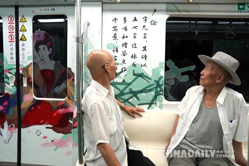 西安地铁推出“唐风诗韵文化专列”,让乘客在唐都长安的风雅诗意中领略现代西安的神韵芳华。(中国日报记者 火炎 摄)