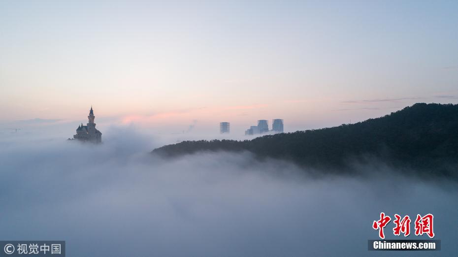 大连出现平流雾美景 星海广场宛如仙境