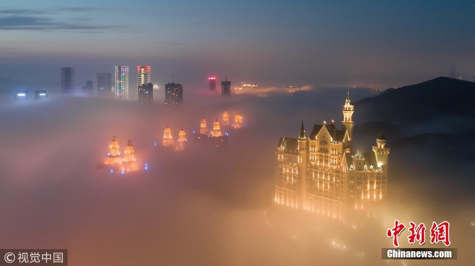 6月19日,辽宁省大连市出现大规模平流雾,星海广场被大雾笼罩,宛若仙境。赵相勇 摄 图片来源:视觉中国