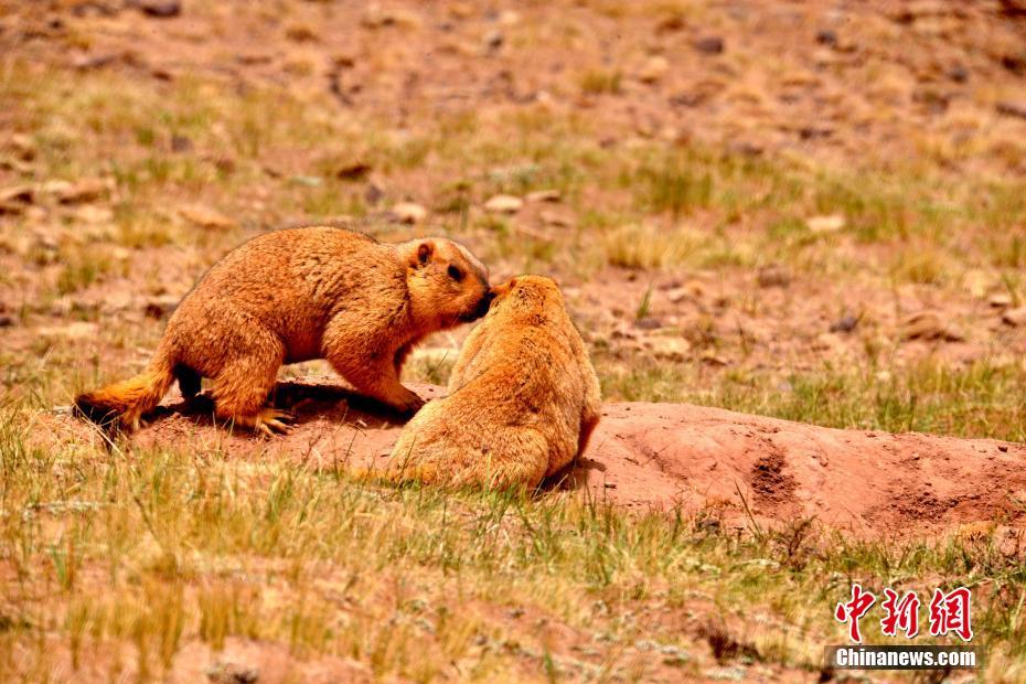 两只旱獭相互“亲吻”。吐旦旦巴 摄