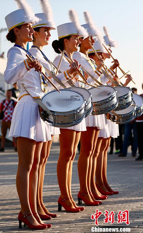 世界杯俄罗斯美女鼓乐队抢眼