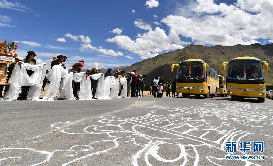 拉萨市堆龙德庆区古荣乡嘎冲村村民迎接来自藏北的新村民。