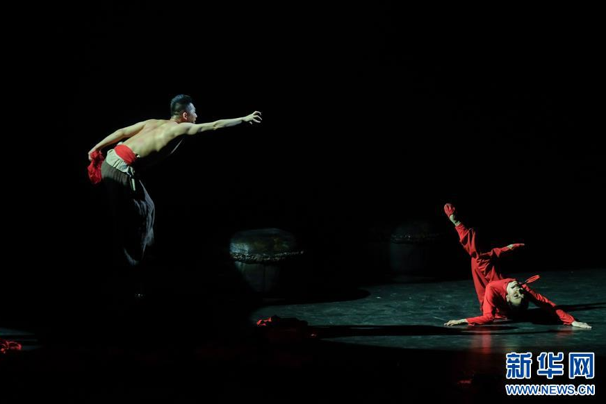 6月20日,演员在舞剧《红高粱》中表演。当晚,曾获“第十四届文华大奖”的舞剧《红高粱》在江苏南通更俗剧院上演。该剧根据莫言同名小说改编,在舞蹈编排、舞美和音乐设计上将芭蕾、中国戏曲、秧歌、号子等东西方文化元素巧妙交融,吸引众多市民观看。新华社发(黄哲 摄)