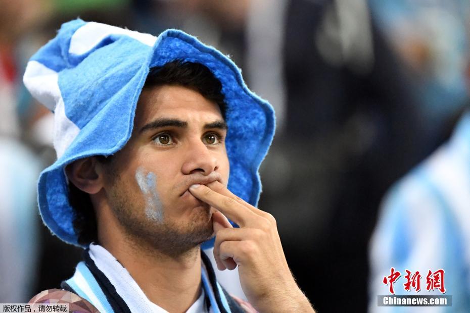 被灌3球后 阿根廷球迷难掩失落泪洒球场