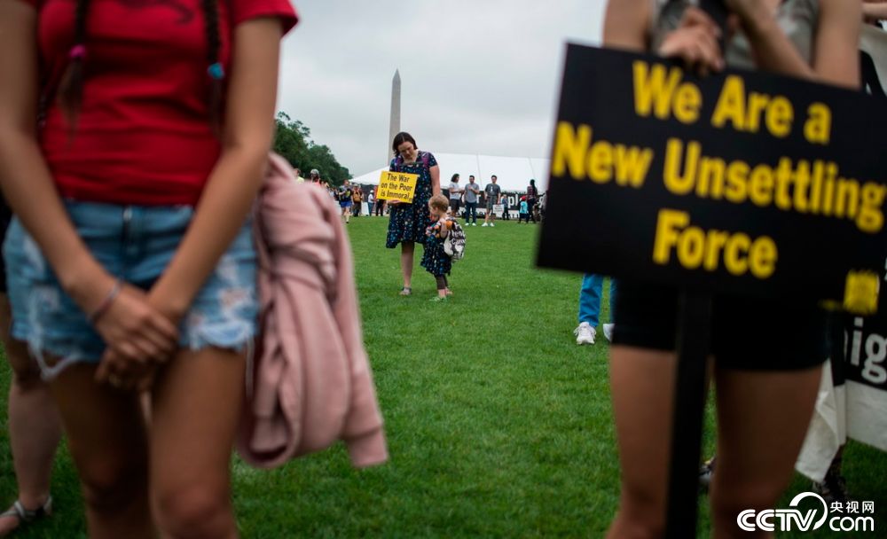 央视网消息:当地时间2018年6月23日,美国华盛顿,民众在国家广场参加“穷人集会”,抗议社会不公正及贫穷。