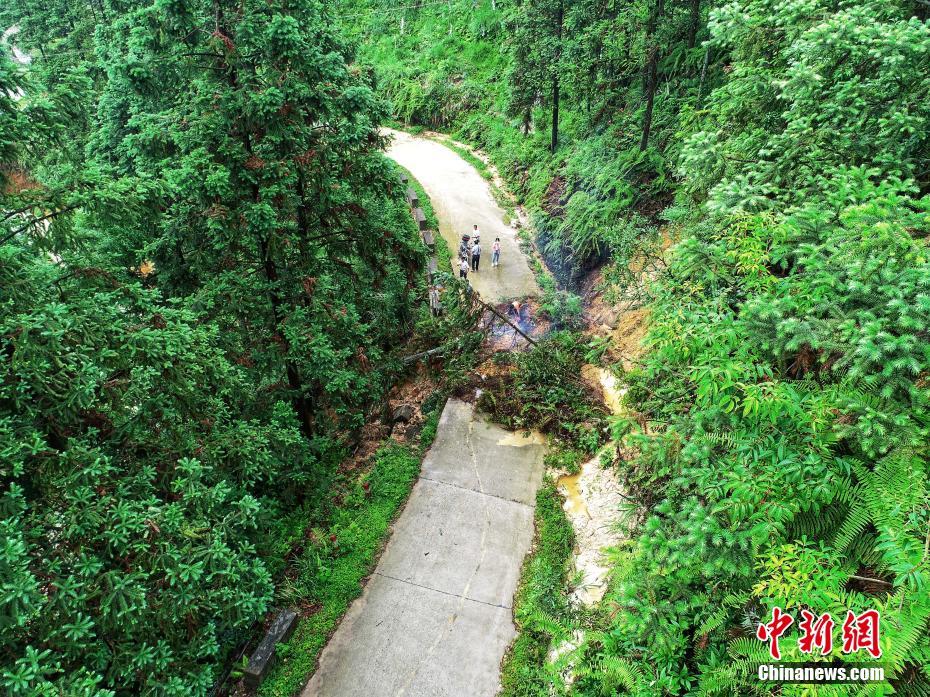 航拍一名男子正用电锯锯倒下的树木。 王以照 摄