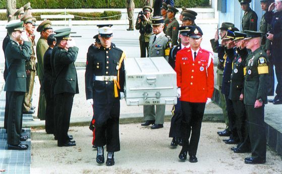 美军在23日的声明中表示,木棺制作于首尔,是为了在接收和运输遗骸时保持一种带有尊严的形式而准备的“临时运输箱”。