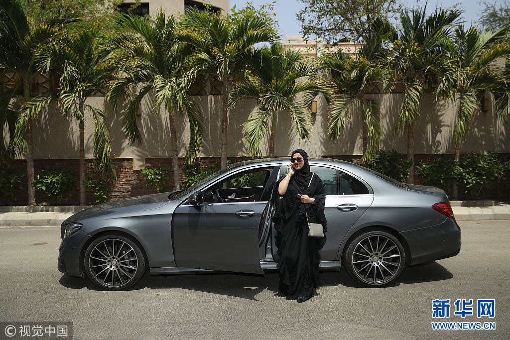当地时间2018年6月24日,沙特吉达,沙特女性驾驶禁令正式解除,首批女司机上路。(图片来源:视觉中国)