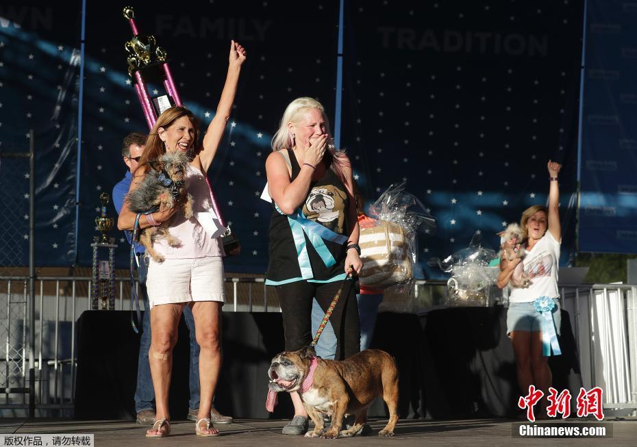 当地时间2018年6月23日,美国加州佩塔卢马,2018年“世界最丑狗”评选活动在当地举行,来自美国明尼苏达州的英国斗牛犬Zsa Zsa最终“丑压群犬”,登上冠军宝座,赢得1500美元奖金。