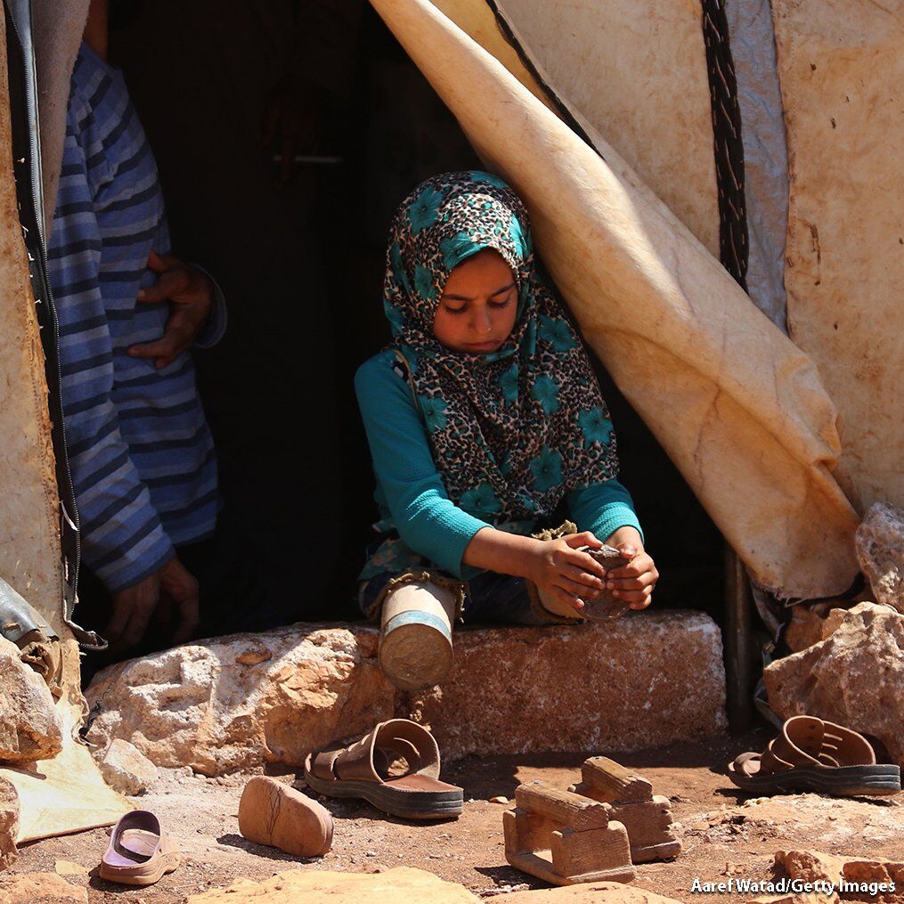 没钱装义肢,叙利亚8岁女童靠两个罐头走路