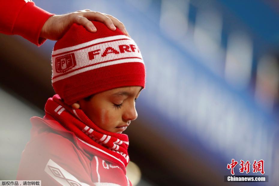 6月21日,秘鲁不敌法国,两战皆败,提前出局。一名秘鲁小球迷在看台上流下了伤心的泪水。身旁的大人也伸出手来,安慰这名心碎的小萌娃。