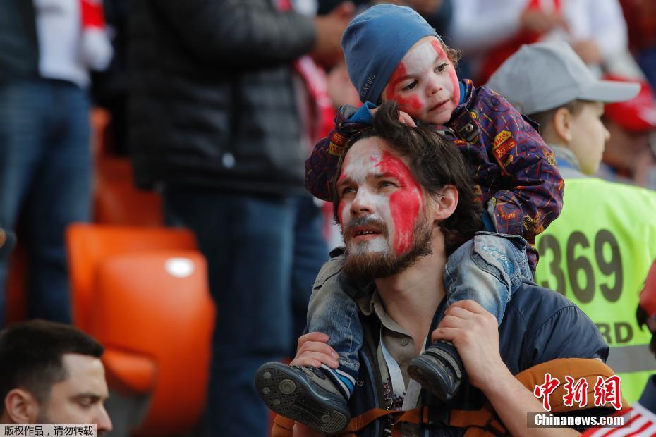 还是法国与秘鲁的比赛,心碎和悲伤是当天秘鲁球迷们的关键词。很多拖家带口来看球的秘鲁球迷都感染了被淘汰出局的悲伤氛围,连骑在父亲肩头的小朋友,表情都那么凝重。