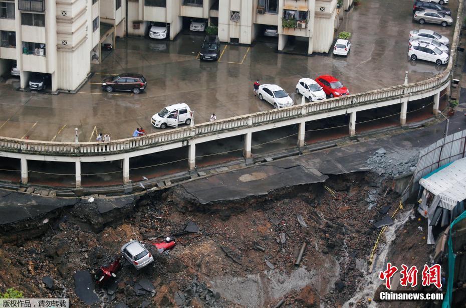 当地时间6月25日,印度孟买遭暴雨袭击,造成一在建住宅楼墙面部分发生坍塌,至少20辆汽车受到毁坏。