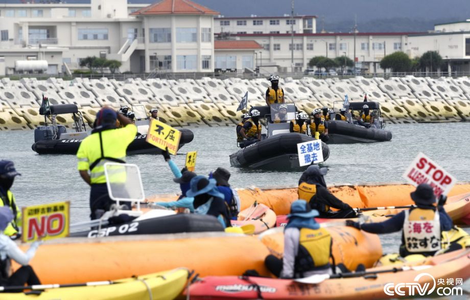 冲绳美军新基地拟8月填海 民众乘充气艇抗议示威
