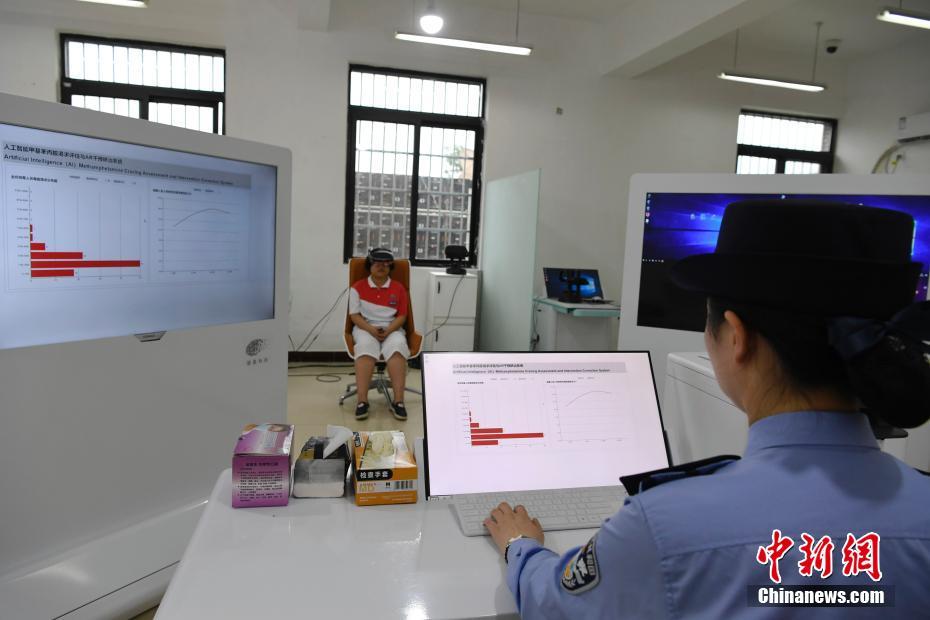 民警在观察AR戒毒治疗效果。安源 摄