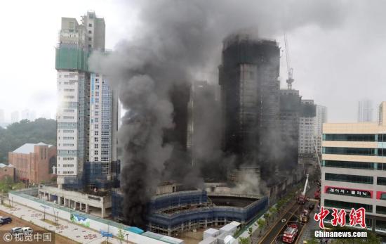 中新网6月27日电 据韩联社报道,27日,韩国消防部门发布消息称,世宗市建筑工地火灾原因系油蒸汽爆燃。烟气顺着7个建筑楼道向上蔓延,形成“烟囱效应”,使火势迅速蔓延。