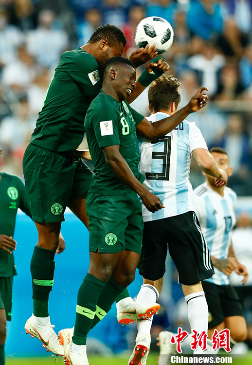 北京时间6月27日凌晨,2018俄罗斯世界杯D组阿根廷与尼日利亚的“生死战”在圣彼得堡新泽尼特体育场打响。梅西、罗霍建功,阿根廷队2-1战胜尼日利亚。在D组同时进行的另一场比赛中,克罗地亚2-1战胜冰岛,克罗地亚、阿根廷分列D组第一第二晋级16强。阿根廷将与C组第一法国队争夺一个8强席位。 中新社记者 富田 摄