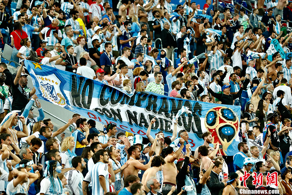 北京时间6月27日凌晨,2018俄罗斯世界杯D组阿根廷与尼日利亚的“生死战”在圣彼得堡新泽尼特体育场打响。梅西、罗霍建功,阿根廷队2-1战胜尼日利亚。在D组同时进行的另一场比赛中,克罗地亚2-1战胜冰岛,克罗地亚、阿根廷分列D组第一第二晋级16强。阿根廷将与C组第一法国队争夺一个8强席位。 中新社记者 富田 摄