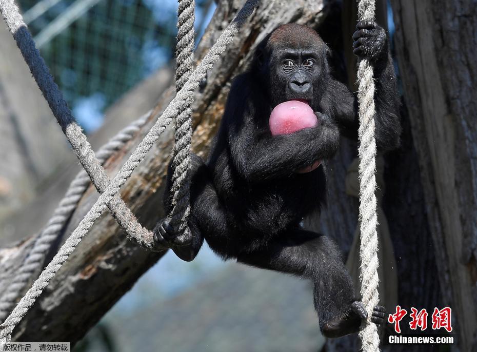 同样需要冰品的还有生活在伦敦动物园的小家伙们,一只名为“Gernot”的低地大猩猩正在享用特供冰品——坚果浆果混合“冰棍”。