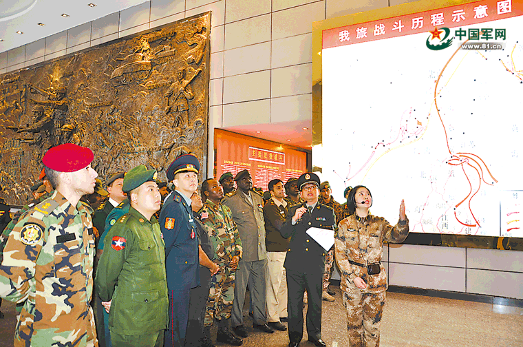 陆军勤务学院外军学员在迎外部队“临汾旅”参观。李庆章摄