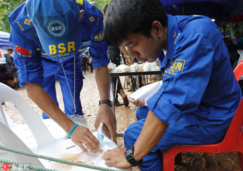 当地时间2018年6月30日,泰国清莱府,泰国一少年足球队的12名球员和1名教练在清莱府一处洞穴探险失联7日,中国救援队驰援泰方参与搜救工作。