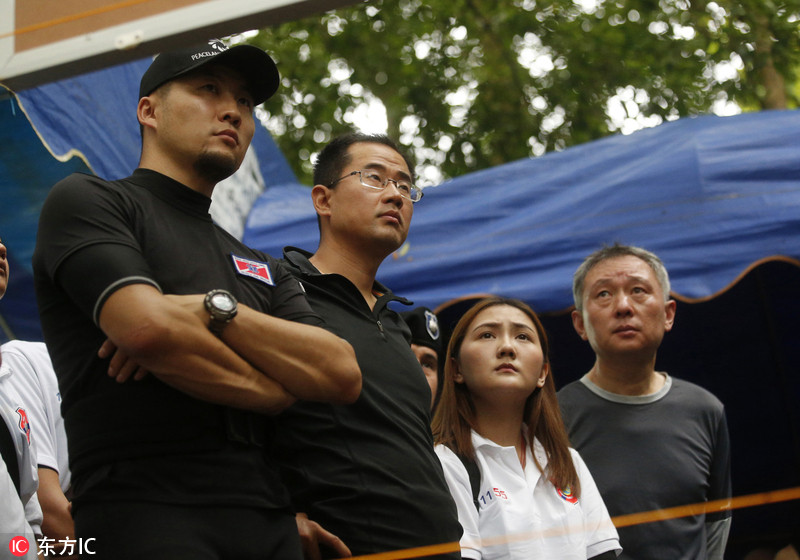 当地时间2018年7月2日,泰国清莱府,搜救队伍再次进入洞穴。泰国青年足球队13人失联已超过一周时间,搜救工作仍在继续。来自中国和美国的救援专家将商讨新的救援方案展开新一轮搜救。