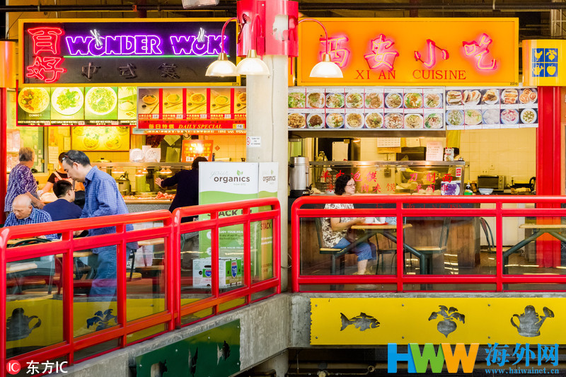 当地时间2018年5月22日,加拿大列治文,加拿大列治文的海鲜久负盛名,大量移民的涌入则促使这里成为当地的亚洲美食天堂。很多人会到这里的夜市品尝中国美食。“西安小吃”位于列治文公共市场美食广场的夹层中。ROBERT LEON/东方IC