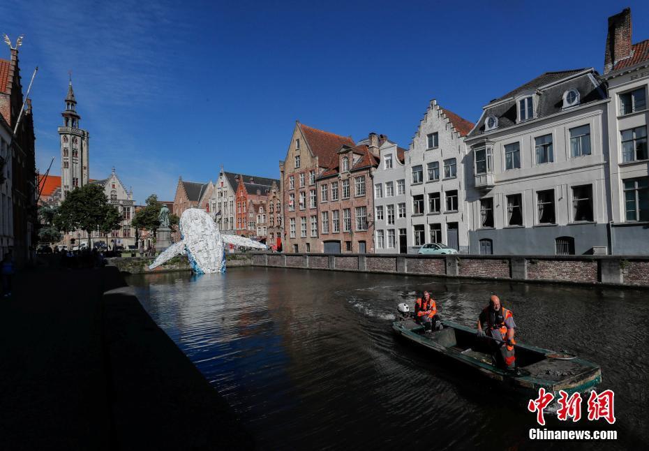 当地时间7月2日,来自纽约布鲁克林的建筑设计公司StudioKCA用从海洋中打捞起来的5吨塑料垃圾,打造了一个38英尺(约11.6米)高的巨型鲸鱼“摩天大楼”(Skyscraper),将其安置在比利时布鲁日的运河中,作为布鲁日艺术与建筑三年展Bruges Triennial的一部分。据估计,现在的海洋中存在着1.5亿吨的垃圾,而鲸鱼雕塑就是为了提醒人们关注这一海洋环境状况。