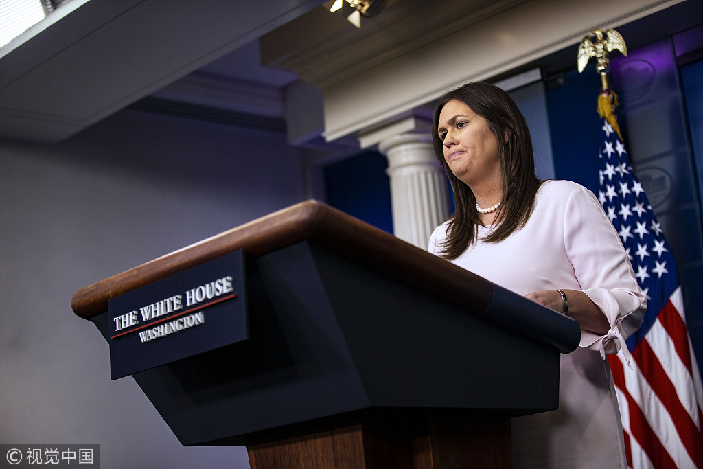 当地时间2018年7月2日,美国华盛顿,美国白宫发言人桑德斯出席例行发布会。多家美国媒体2日报道称,特朗普政府已经起草一份法案,允许美国放弃世界贸易组织(WTO)基本原则,并赋予美国总统特朗普更大的自由裁量权。白宫发言人称,被泄露的法案并非“政府准备推出的实际立法”,政府相关部门负责人“甚至没有开会审查任何有关互惠贸易的法律文本”。