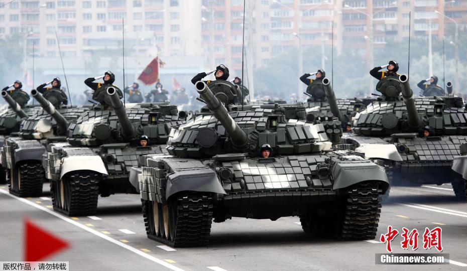 当地时间7月3日,白俄罗斯独立日阅兵式在白俄罗斯首都明斯克举行,白俄罗斯装甲部队接受检阅。