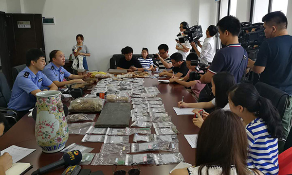 据湖南长沙市长沙县公安局召开的新闻发布会上消息,6月29日,长沙县公安局刑侦大队在市公安局刑侦支队等部门的大力支持下,联合安沙、湘龙、北山、高桥派出所,成功摧毁一盗掘古墓葬团伙,刑事拘留9人,破获系列古墓被盗案,其中包括辛亥革命元勋黄兴之父等古墓,扣押了玉器、墓志铭、金丝楠木等涉案物品。