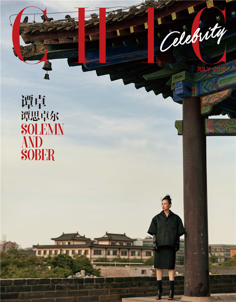 谭卓曝封面写真 青砖红唇演绎复古风情