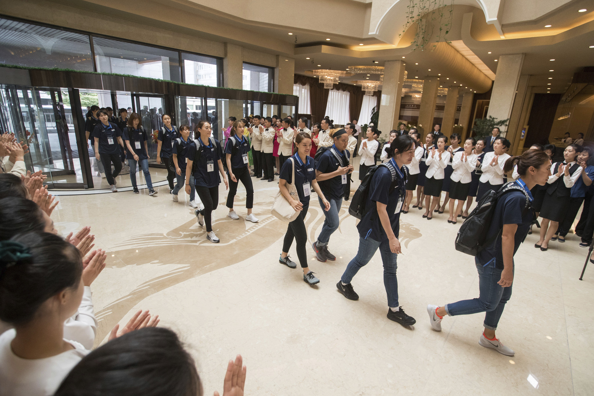 韩朝统一篮球赛韩方代表团抵朝