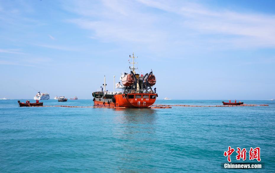 图为海上溢油围控、溢油污染清除演习。中新社记者  王晓斌 摄