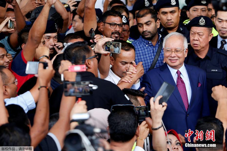 纳吉布获准保释离开法院获支持者簇拥笑容满面