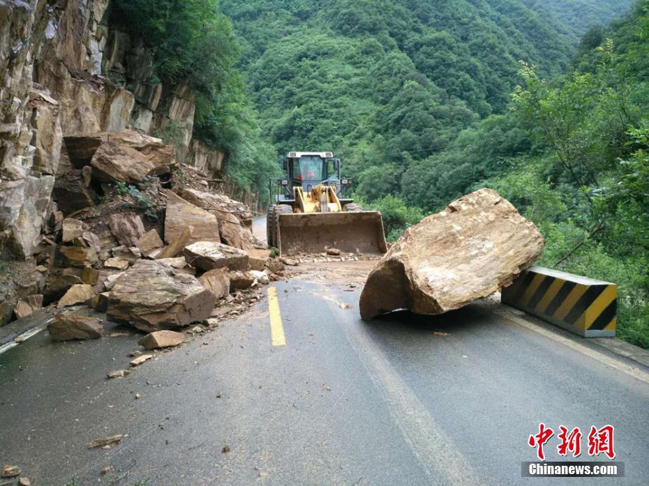 陇南市康县公路管理段调运最近的机械设备及时赶赴现场清理塌方。陇南公路管理局供图