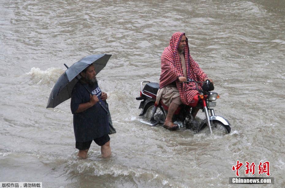 巴基斯坦拉合尔遇38年最大降雨 街头一片汪洋