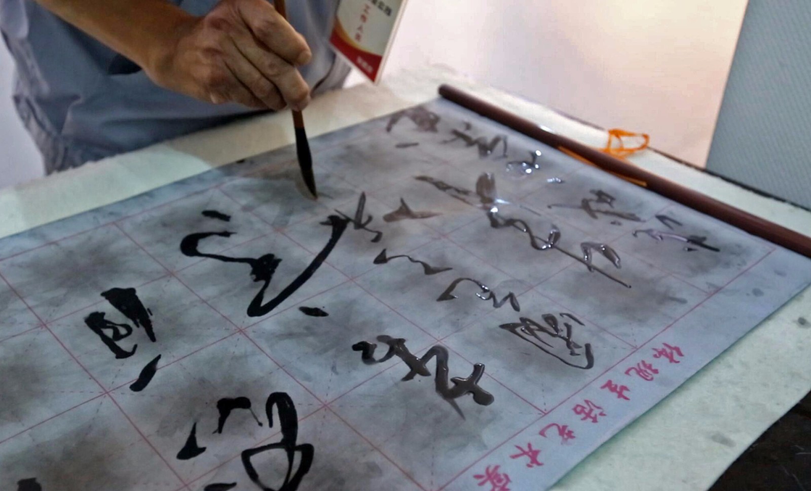 在教育博物馆书法展区里,张西京每天工作时都会认真观看大书法家的作品,并对其分析学习。