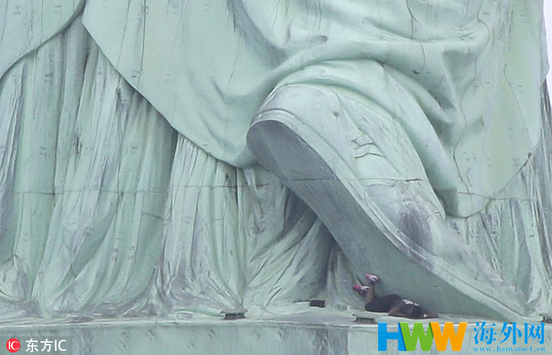 美国独立日出“闹剧” 女子攀爬自由女神像抗议险象环生
