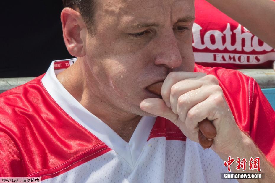 美国吃热狗大赛 男子10分钟狂塞74个破纪录