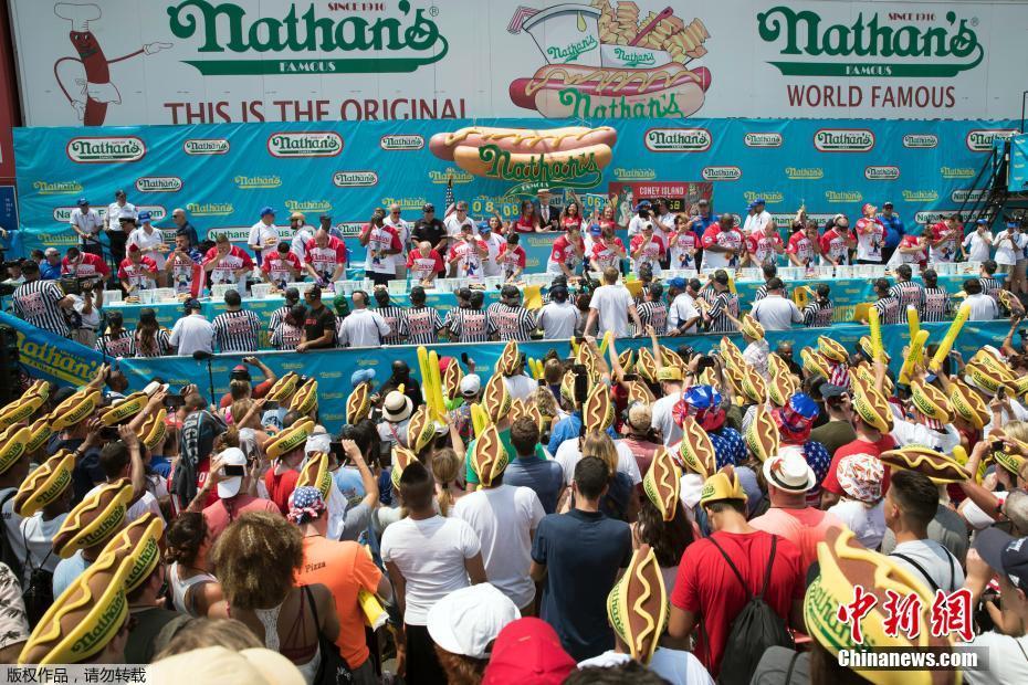 美国吃热狗大赛 男子10分钟狂塞74个破纪录