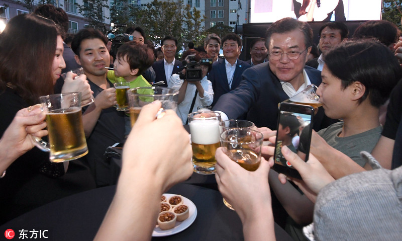 当地时间2018年7月5日,韩国首尔,韩国总统文在寅出席一场针对新婚夫妇住房保障的公开活动,发表讲话还与民众热情互动。