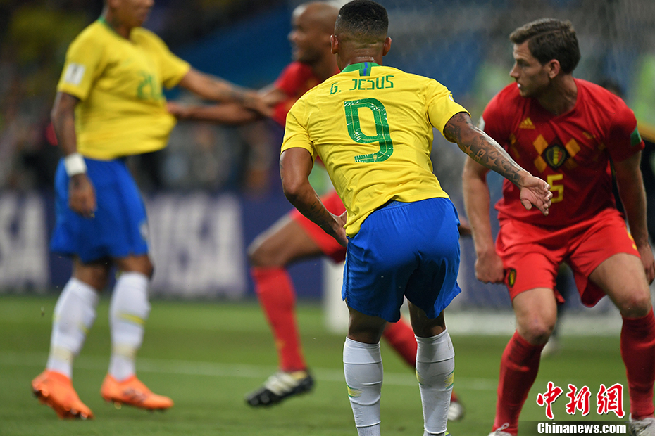 北京时间7月7日晚2:00,俄罗斯世界杯第二场1/4决赛在喀山进行,经过90分钟的激战,比利时以2:1险胜巴西,晋级四强,他们在半决赛中的对手将是法国队。 中新社记者 田博川 摄