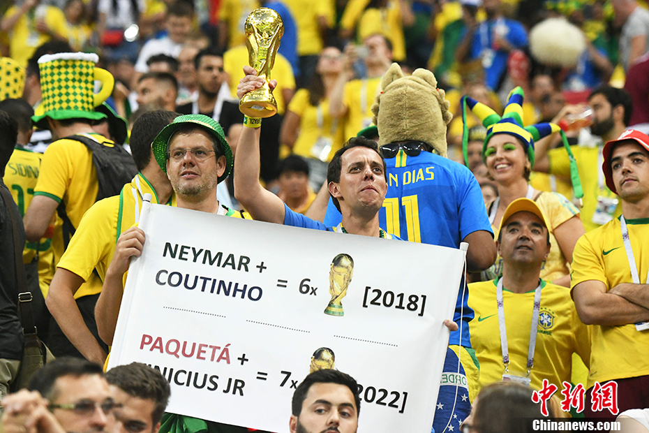 巴西球迷打出支持球队的标语。 中新社记者 田博川 摄