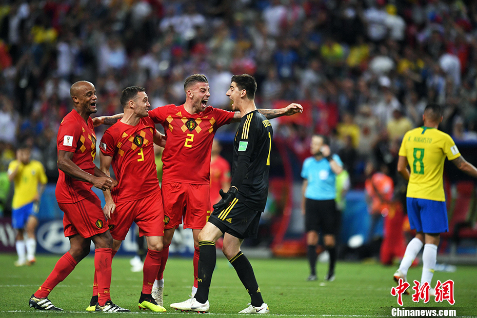 北京时间7月7日晚2:00,俄罗斯世界杯第二场1/4决赛在喀山进行,经过90分钟的激战,比利时以2:1险胜巴西,晋级四强,他们在半决赛中的对手将是法国队。 中新社记者 田博川 摄
