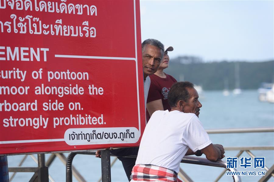 7月6日,在泰国普吉,当地居民在码头等待救援消息。 新华社记者秦晴摄
