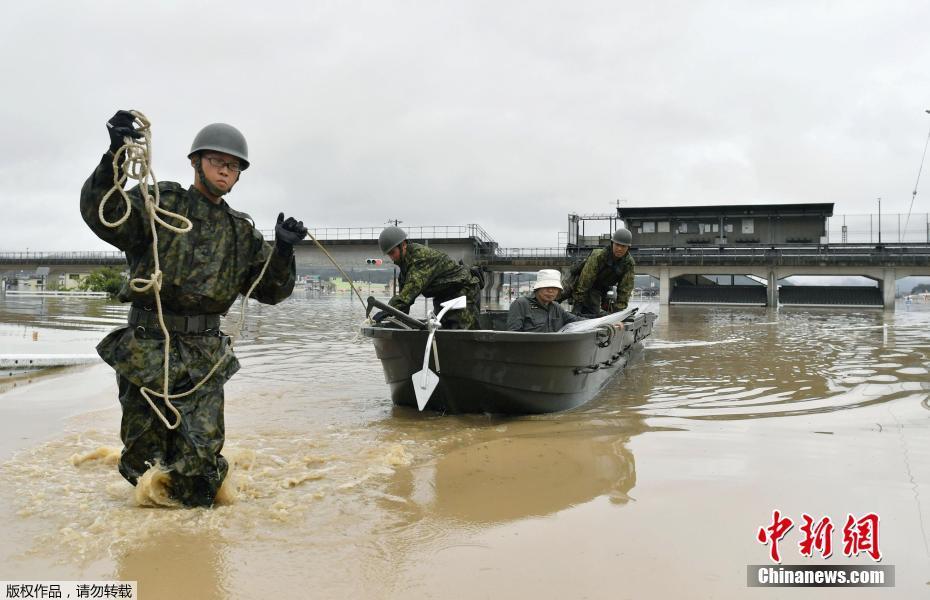 日本遭强降雨 民众爬上屋顶等待救援
