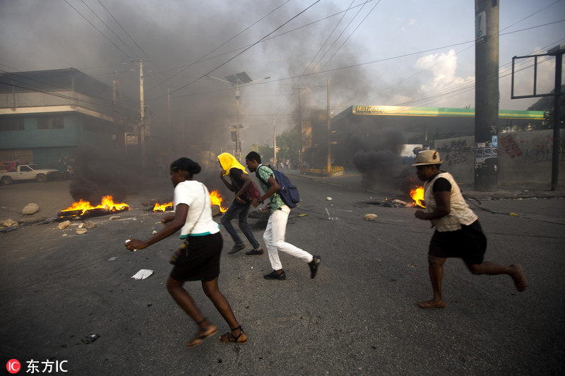 海地民众示威抗议油价上涨 焚烧轮胎封堵街头乌烟瘴气